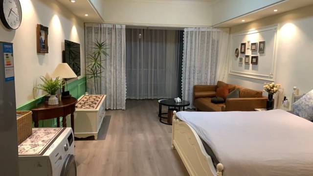 房间很大,环境很好,很干净整洁,设施齐全,地理位置好,就在万达广场,交通便利,吃喝方便。下次来还订花生民宿!