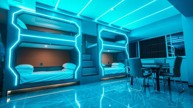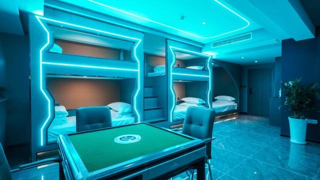 依托于电竞游戏的新型酒店,打造全绵阳独具特色的高端电竞酒店。顾客不仅可以享受媲美网吧的高品质电竞体验,还可以拥有住酒店的舒适体验。 高配置的电脑设备、优美的竞技环境、优质的后勤服务,提供洗衣烘干、点餐、麻将等服务,全方位给顾客带来沉浸式体验。酒店根据用户选择,有迷你单间、情侣间、二人间、三人间、四人间、五人间等,提供不同需求的消费人群到酒店享受“战斗只因逐梦想,青春作伴炫人生”的青春岁月。