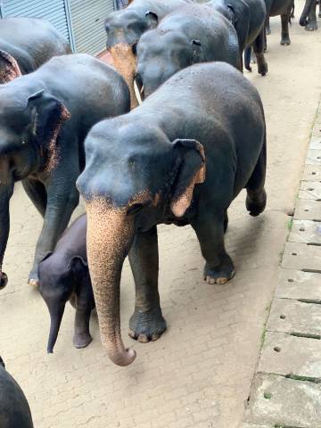 酒店就在大象保育园旁边,这点很方便,因为早上8点半和10点,他们都会带大象去洗澡,8点半有6头大象,10点有一大群小象。这样你就可以赶在大部分游客到来之前,看到它们,给它们拍照,甚至喂食。