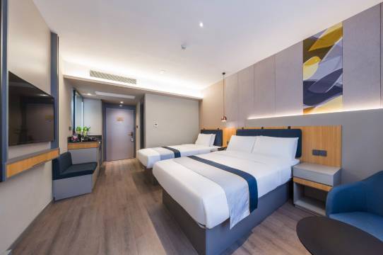 房间不错,床品舒适干净。前台小姐姐服务很热情,还有机器人送餐可以不用下去拿外卖。周边交通很方便,临近地铁站。