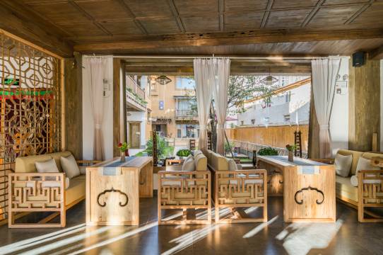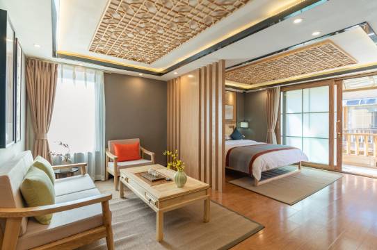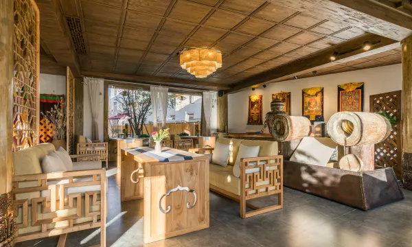 宽敞的藏式客房空间,藏式风情中融入清新简约的格调,客房从床架、吊顶、家具陈设都融进藏区独有的图腾和风格,休闲雅座,躺椅,尽享客房舒适自在,别苑结合茶马文化设计了雅致的禅意中式风情客房,清新自然,阳光饱满,在房间就能体验禅茶文化带来的意境体验,不仅能品茶,更能在观景露台和休闲客厅中欣赏绝美的古城景色。