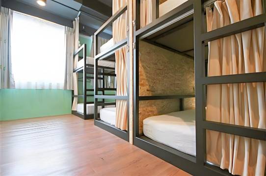 旅店拥有床铺均为上下铺,房内配有充电插座、手机座、阅读灯、卫浴设备,吹风机,洗发乳,沐浴乳等设施。旅店大门采密码锁,每人配有置物柜有密码锁,没有电梯。有Wifi,1楼为用餐区,可看电影,玩音乐(有乐器),上网,玩桌游。