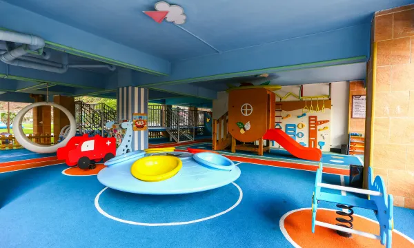 楼下还有超大儿童乐园,滑梯、摇摇马全都有,娃疯玩一下午都不喊累。