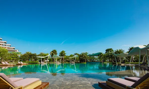 小细节,大亮点。进出酒店必经迎宾饮水台,姜汤茶🍵得体到位,进出酒店喝一杯,风寒感冒不用吃药,姜汤热乎乎很暖心❤️自助餐有特色。推荐这家酒店,设计高级有格调,环境优美。步行到银滩很近,出行停车都方便。房间干净舒适,设施齐全,泳池水质很好。早餐选择多,小霍管家服务热情细心,非常满意的一次度假体验。