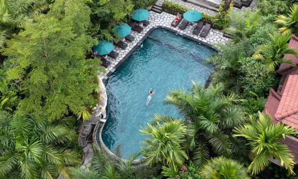 酒店有很多热带雨林绿植物,景观好,游泳池很出片。早餐非常不错,品种多。服务员很热情,每天笑眯眯的,很热情,还帮忙运送行李。酒店还提供美味的下午茶,有定时班车到乌布市区,很方便。在酒店还做了按摩,手法不错,很舒服,需要收20%的服务费,价格稍高。