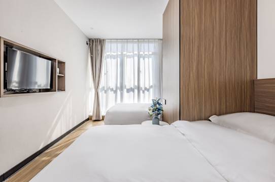 给我升级了房型,nice!位置特别好,市中心在南屏步行街上,下楼逛街吃饭都很便利,房间干净整洁,床垫睡着很舒适,是蹲便,哈哈😃这点特别好,小区进出都用门禁卡感觉挺安全的!值得推荐