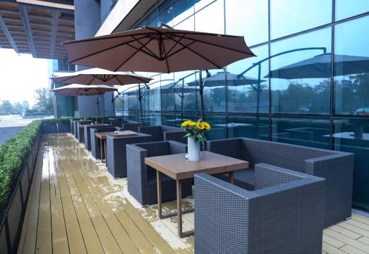 酒店拥有多间各类宽敞舒适客房,配备自助洗衣房、享悦空间,近 700 平方米大型多功能厅,可充分满足宾客住宿、宴请、路演等需求。同时设有特色主题茴餐厅、釉餐厅、悦吧等,甄选综合保税区进口一线食材,让宾客即可品中外美食,亦可享闲暇时光。