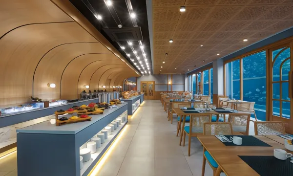 食物也非常好。早餐种类丰富,包括当地特色菜和国际美食。所有食物都很新鲜,烹饪得也很用心。餐厅工作人员热情周到,彬彬有礼。