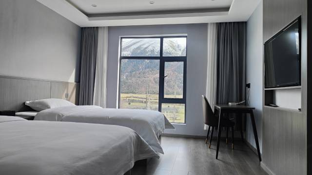 房间宽敞舒适,卫生整洁,前台服务态度特别好,热情,房间附近景色不错,推窗就可以看到雪山🏔