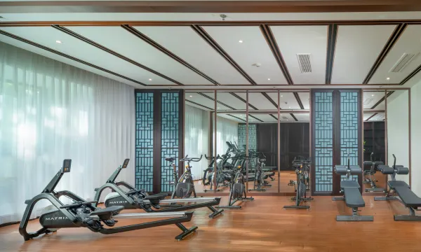 【配套设施】健身房不大,但基本锻炼和撸铁勉强够用。