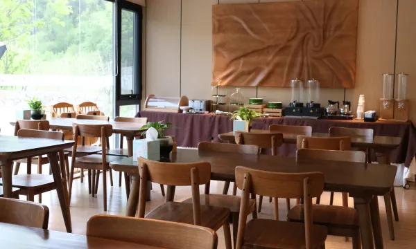 农庄是非常有特色的分布式建筑结构,个房间独立在山间花丛中,由小路相连。山水之间,云雾缭绕,悠然的环境令我们体验到“采菊东篱下,悠然见南山”的松弛感。