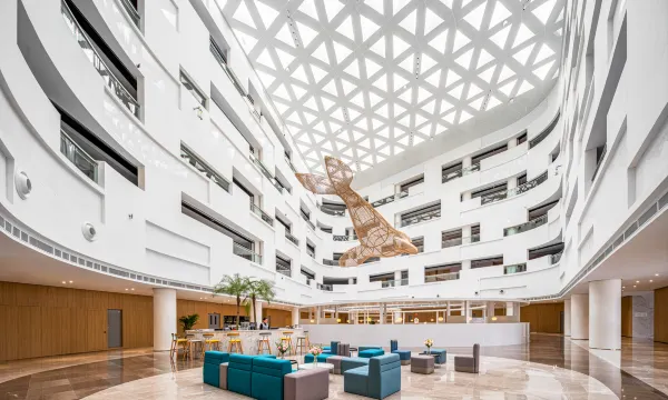 酒店耸立于渭河湿地公园的廊道附近,空气清新,视野开阔,环境舒爽。酒店设计时尚,服务人员年轻帅气漂亮,彬彬有礼又充满朝气,令人耳目一新。房间设施齐全,布置简约大方,宽敞舒适。早餐尤为称赞,原材料中上,果蔬鲜亮,菜品新鲜味道纯正,没有发现剩菜混迹其中。就餐在一楼沉降大厅,环境匠心独运,艺术气息浓郁,就餐仪式感拉满。特别推荐。