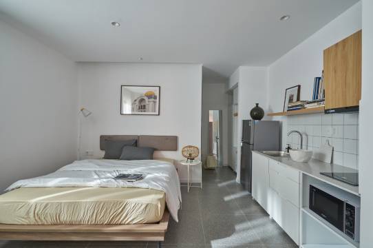 非常棒的地方,简洁、干净、安静、安全,而且离餐馆、咖啡馆都很近。价格合理,不过公寓面积确实比较小。但每间都配有小厨房。推荐!