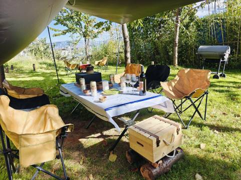 院子很干净,民宿有自己的院子,可以烧烤,有帐篷,房间里可以看到苍山和洱海,适合带着老人跟小孩一起出行。