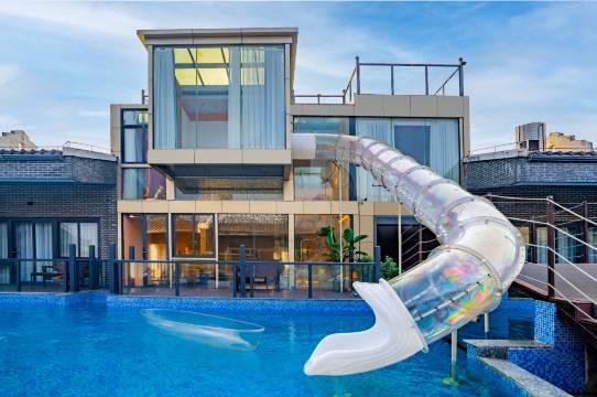 这次订了2房3床的亲子房型非常适合两个家庭或者带老人孩子出行,一进门就是小孩爱玩的滑梯,房间配备麻将机,阳台可以烧烤,氛围感拉满。亲子元素这是一个集休闲、娱乐、亲子于一体的宝藏房间,下次还会再来!