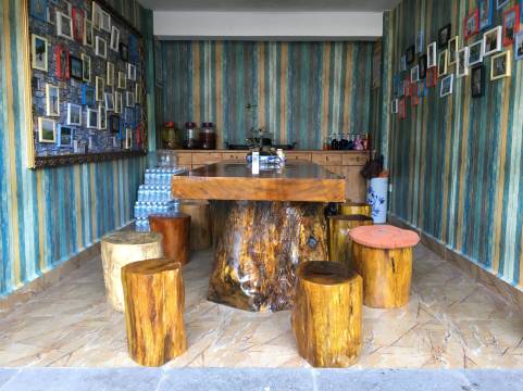 房间卫生也不错,设施齐全,在外面逛累了,坐在房间外面或者大堂的摇椅上,很惬意。