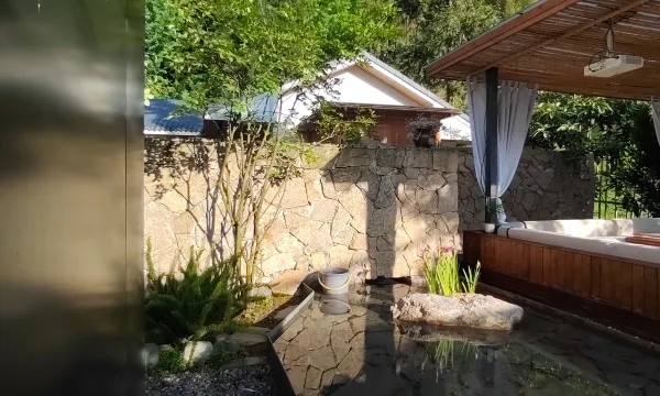 必须给这家山林私汤民宿打五星!从踏入院子开始,好感就一路飙升——藏在山里的环境太治愈了,空气里全是草木香,完全避开人潮,私汤池的水质干净到放心,智能控温超贴心,泡进去那一刻浑身的疲惫全散了,晚上搭配家庭影院,舒适度直接拉满。