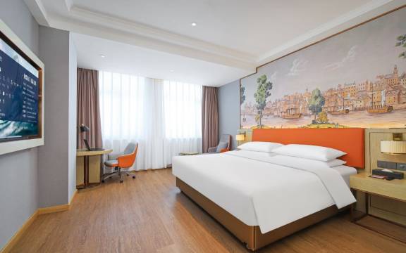 性价比高。房间有地灯。夜里起夜可以照明,又不影响休息,很贴心。房间很宽敞。楼下就是大超市和广场。不远处是美食街,主要是烧烤,火锅。我们中年人不习惯这种饮食。酒店马路对面有一家店名,早早家常菜,主营炒菜和凉菜。味道又好,菜量也大,很实在,生意火爆,推荐。