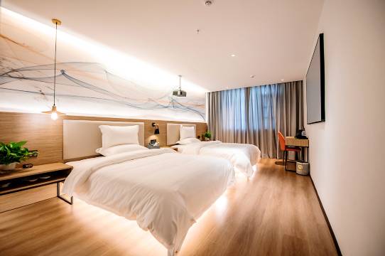 酒店坐落于三岔湖/天府机场(在建)地区,优越的地理位置使它成为一个令人向往的住宿选择。 提供24小时热水,让您感受到宾至如归的享受。在一天的忙碌后,您可以在酒店尽情的享受各种体育和休闲设施。酒店设有24小时前台咨询服务,为下榻至此的您提供最贴心的行程安排。【交通】距离天府国际机场车程约28-35分钟;【地铁】三岔地铁站18号线;【景点】距离三岔湖风景区车程约10分钟;距离龙泉山城市森林公园丹景台车程约20分钟;距离高家庄休闲庄园驾车5分钟左右;距离三岔湖国际垂钓基地打车10分钟左右;距离林栖公园打车约10分钟,可乘坐东11路公交(五岔路口上—东部新区市民中心下)约35分钟;距离未来设计艺术中心打车约10分钟可乘坐东11路公交(五岔路口上—东部新区市民中心下)约40分钟;距离成都体育学院(三岔湖校区)打车10分钟左右,可乘坐东11路公交(五岔路口上—蓝筹带社区下)约30分钟【设施及服务】酒店所有消耗品都可补给,客房棉织品由国内互联网洗涤平台洗涤,有卫生局颁发的卫生检验合格证,所有棉织品均一客一换,您可放心使用【酒店硬件】酒店包含单人间,双人间,智能房,影音房 客房布置宽敞通透、色调轻盈舒适,房内配置空调、卫浴系列,提供洗衣机,打造惬意休眠空间