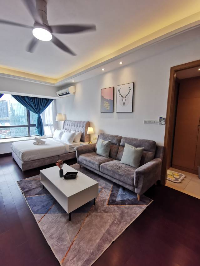房间空间非常大,设施很新,卫生干净,还是很棒的,有机会还住这里,周边有吃的餐厅,出租车可以停到楼下,离jb车站10分钟车距
