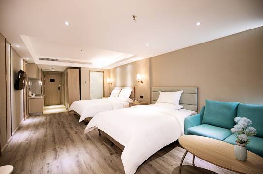 房间很干净,宽敞明亮,前台免费升级了房型,延迟了退房,很好,不错,可以来入住体验,房间也很大,对着万象城,购物出行很方便,步行两百米就是地铁站!