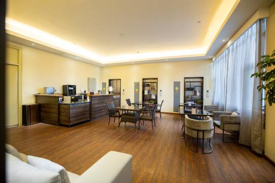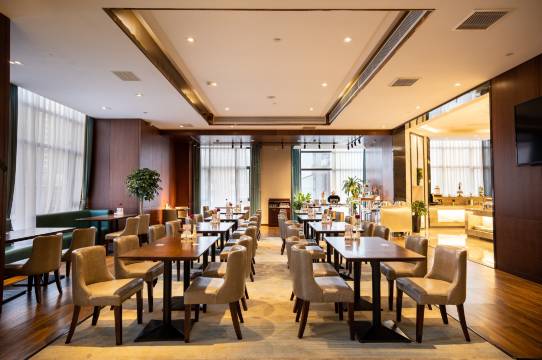 酒店距离华润万象城、丹尼斯大卫城、新田360购物中心、大上海城、德化步行街、世贸大户批发城、地标建筑(二七塔)、郑大一附院等热门商圈很近。酒店近轨道交通3号线、1号线。酒店集商务会议,餐饮为一体的国际化高端商务酒店。酒店层高24层,拥有客房、套房;房间装修精致,舒适宽敞并配备高品质客房设施,包括大型停车场、自助早餐厅、自助洗衣房、健身房、大堂吧、雅典餐厅,商务中心等设施,让客人充分体验酒店的豪华与舒适。酒店配备3个会议室:220平中联厅、100平、150平多功能会议室。作为郑州市二七区商圈的一家大型酒店,我们以完善的配套设施,优越的地理位置,专业的酒店服务让您的旅途温馨愉悦!