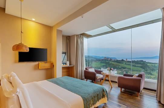 一家人出来玩儿,行程中最期待的就是这家酒店。我们是下午1点半到达的,前台小姐姐热情地接待了我们,不厌其烦地带我们参观我们的房型,因为我想要视野好一点的房型,小姐姐非常大方的给我们升级了4楼的套房,视野真的绝绝子。