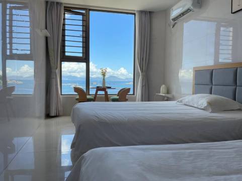 房间非常好,揽山临海,老板人非常好,免费换大床房,位置方便,一出来就是海滩,饭店和码头也在附近