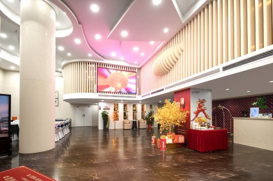 酒店大堂有过年的气氛 装饰的很漂亮,主要他家还有两层免费停车服务, 出行很方便,前台办理入住很细心,微笑服务 小西服务态度好,升级了房型,非常满意 早餐是自助的,想吃什么自己拿,量也挺多 ,房间卫生很干净,干湿分明,很有性价比的一家大型酒店。