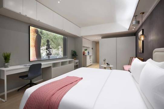 房间跟床都很大,卫生做的很干净,酒店位置就在中电软件园旁边,离尖山站也很近,去哪都很方便,对面还有美食街,老板也都是80后,懂得年轻人的想法,服务态度也不错。很愉快的一个住宿体验。投影画质清晰度、播放流畅度、装修风格/主题