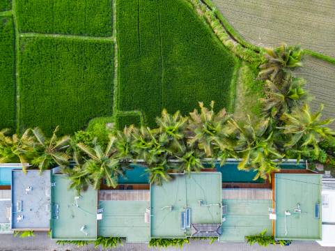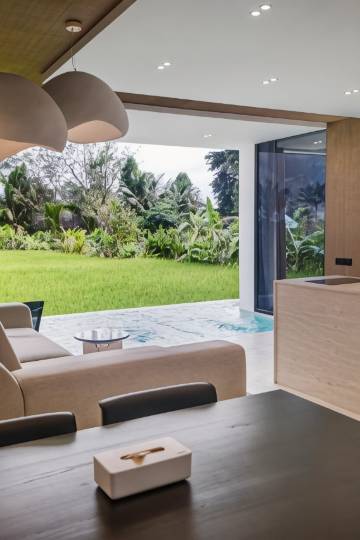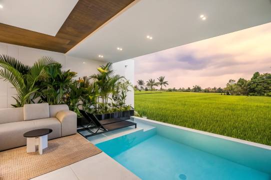 别墅非常新,也很干净!俯瞰稻田的泳池简直太棒了。
