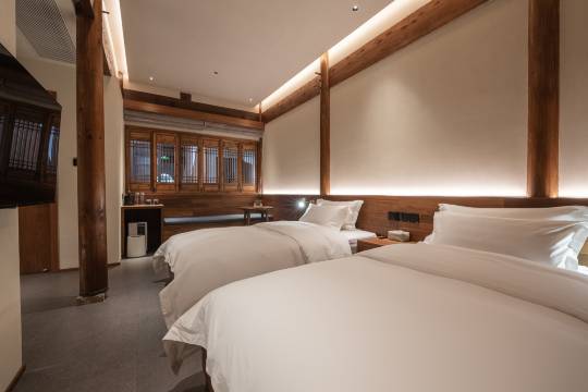 春节旅行家里人最满意的酒店,①与北站近,交通方便;②西溪村很美,尽管枯水期,村子的民宿特色与自然绿野先踪结合的非常有特色;③酒店设计基于原有老宅风格与园林水景亭台楼阁布局展开,设计感很强,非常适合拍照打卡旅拍,一进门感觉很像即下山,果然,后来聊天中知道老板是设计师他们是熟识的;④房间干净、舒适、安静,榻榻米可以再分担睡一个人,亲子是够睡了;⑤床品、洗漱用品、早餐品质、管家服务看齐五星酒店,非常满意;⑥个人认认为作为本酒店的灵魂四只猫(招财最粘人、元宝最傲娇…),功不可没。