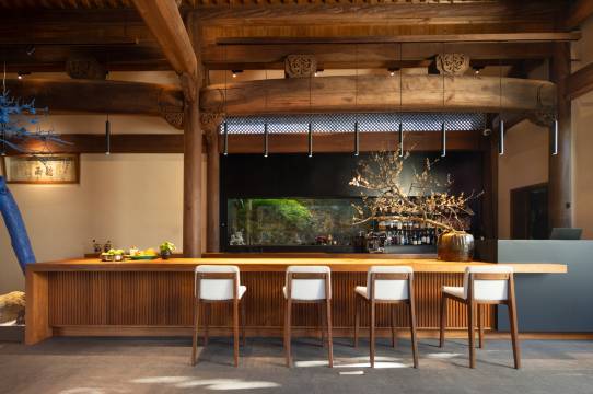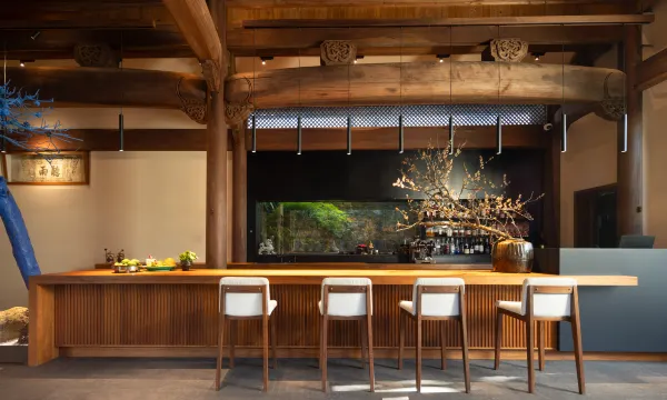 民宿占地面积约2000平方米,建筑内大量运用园林造景,传统与现代完美融合,建筑与园林和谐共处。