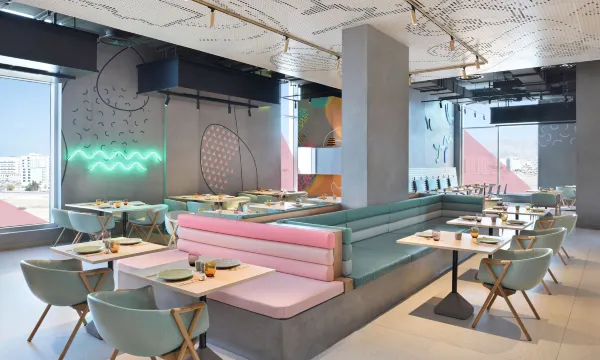 酒店地处市中心,毗邻马斯喀特机场,将都市的繁华活力与静谧悠然完美融合在一起,为您打造全方位的旅居体验。酒店坐落于活力之都马斯喀特的核心地带,将音乐热忱与设计美学完美融合,呈献多款招牌特调鸡尾酒与多元美食体验,带您沉浸式感受独特鲜活的氛围。酒店餐饮选择丰富多彩:Backstage全日餐厅供应国际美食到中东融合风味佳肴;能量:站提供美味外带简餐和小吃;Wave Burger为您定制专属美味汉堡;Arcade荟萃各国街头小吃,更有丰盛暖心佳肴任您挑选。无论您是想打一局台球、在酒店活力满满的场所惬意放松、于户外嬉水池沐浴暖阳,还是高效处理随行公务,我们的马斯喀特卓越酒店都是理想之选。在马斯喀特雅乐轩酒店,日夜精彩不停歇,活力时刻在线。
