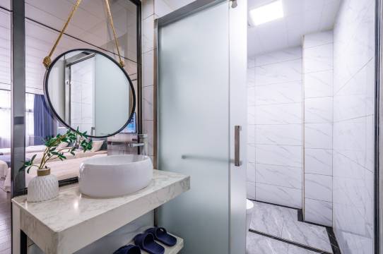 [酒店硬件]酒店可提供自助洗衣服务,房间都是精致装修、客房内床品、卫浴用品及高端洗浴用品、24小时热水、吹风机、所有的装修材料都选用新型绿色环保材料,轻柔亲肤自然床品。
