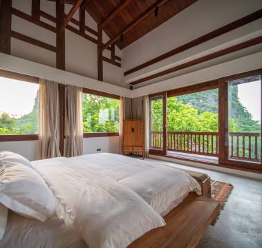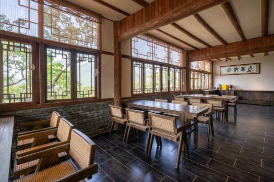 非常值得一去的民宿。民宿依山而建,及时不出酒店也能玩上一天。各个房间的风景都不一样。可以肯定的是每间房都不会失望。茶室免费使用还有公共泳池。冬天山里比较冷。建议备一些毛毯给客人使用。唯一影响的就是去那里实在不方便周边没有什么饭店。山顶茶室建议摆放一些毛毯可以增加居家氛围。