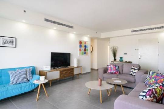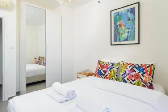 此公寓配有带大冰箱和烤箱的厨房,让您可以尽情放松享受。独享私人配备家具的阳台。配备带数码频道的 60 英寸液晶电视,此外还可使用免费无线网络,方便您与朋友保持联系。便利服务设施包括独立的起居区和微波炉,并可根据要求提供婴儿床(额外收费)。
