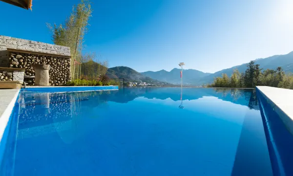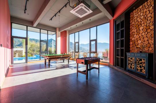 房间不错哦,布局新颖有档次,民宿设施齐全有泳池有烧烤区有台球桌,有钢琴、吉他、古筝等乐器可供选择,喜欢K歌的还可以高歌一曲。