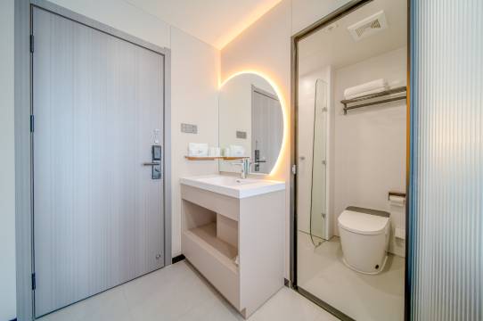从下单到退房全程都超省心,必须给店家的细节服务点个大赞!提前沟通了早到的需求,到店时房间已经打扫干净,房间设施很新,智能马桶、高清投影、独立卫浴一应俱全,热水秒出且水温稳定,洗漱用品是淡淡的植物香,用完完全不紧绷,满意。