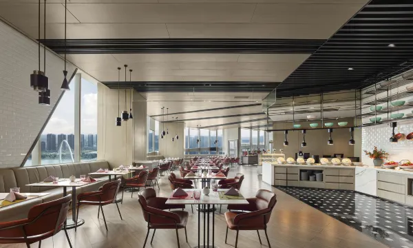 西安浐灞悦苑酒店位于浐灞生态区的核心位置,临近高速公路入口,是西安东西旅游线路的交汇点。酒店步行可达华夏文旅度假区。距西安咸阳国际机场、西安高铁北客站、秦始皇兵马俑,40分钟车程可达。 酒店由悦榕集团设计团队量身打造,拥有温馨舒适的客房和套房。北侧的房间均可从落地窗中欣赏灞河网红桥的绝美夜景。酒店拥有一个可容纳180人就餐的心窝餐厅,其中包括一个露台吧、两个中餐厅包间和一个时尚的大堂吧,旨在为商务客人和周边社区提供特色的餐饮体验。酒店设700余平方米会议及活动空间,包括一个约580平米、挑高8米的无立柱宴会厅,一个约200平米的多功能厅。无立柱宴会厅拥有约200平米宽敞明亮的宴会前厅。所有会议空间可灵活组合,皆配备专业高品质的影音设备、高清LED、高速Wifi。会议空间与大堂分隔,宾客可直接从大堂乘坐扶梯进入宴会前厅,适合承接各种规模的商务会议及宴会。