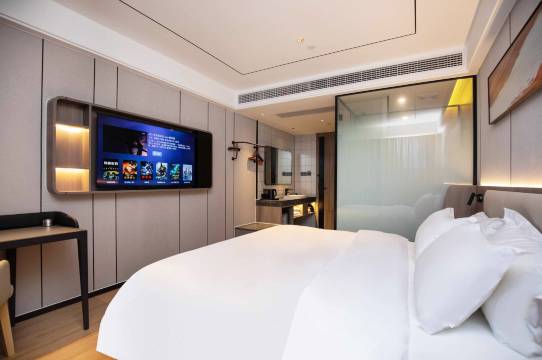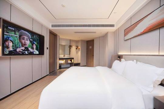 酒店采用现代简约设计,装修风格雅致、艺术、温馨,客房内配备国内床垫、睡眠枕、网络电视、品牌卫浴、无线WIFI、空调等。酒店更设有自助洗衣房、健身房、餐厅等服务,为您的差旅生活提供无线便利。我们立志为每一位旅途中的宾客提供一个家,以热情的服务、舒适的环境待你的到来!