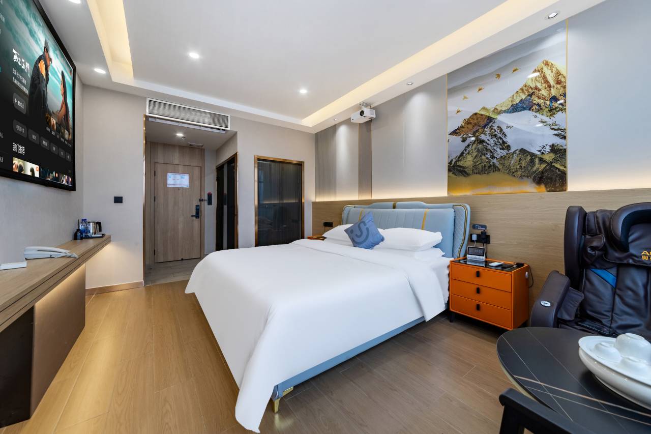 宾馆简直物超所值,床垫又大又柔软,智能窗帘,投影巨大,还有小度。位置也很便利,骑电动车就可以到达古城。