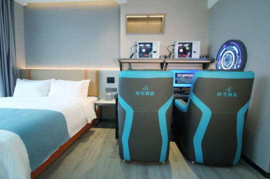 时空酒店座落在梓江河畔,处于盐亭核心商业圈,位于两江广场与嫘祖桥交汇处。时空酒店是盐亭按现代风格装饰装修的全智能电竞主题酒店。酒店设施设备高端一流,装修时尚典雅,客房为您提供专业高速网络电竞设备(3060/3070,16内存,120HZ电竞专用显示器),立志为广大电竞爱好者打造盐亭高标准,高服务,高品质的电子竞技环境。尤其是江景影音电竞房系列深受客户的喜爱,好评连连,是您休闲娱乐、商务出行,电竞爱好者的优佳选择。时空酒店期待您的光临。