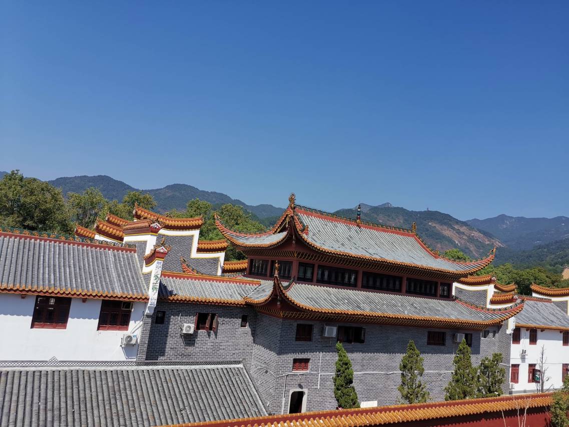 在大庙的门口旁边,走过去两分钟就到,店家热情服务,高铁站接,很好的值得推荐的。店里请香讲解的很好。果断的住多晚,休闲的再上衡山。
