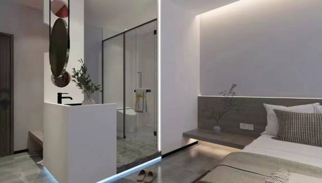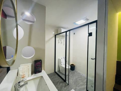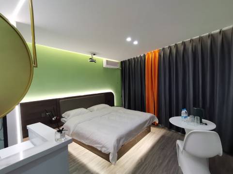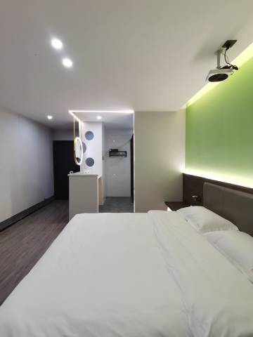 觉得这是一间比较有设计性的民宿,跟普通酒店格局不一样,投影仪挺大的,我挺满意的,卫生也比较好,离时代广场也挺近的