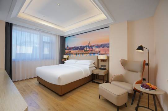 酒店服务好,房间干净整洁,我们预定的豪华大床,但是入住时升级了套房。套房很大住着很舒服,浴室水温也很稳定。房间十分智能化,可以让智能助手帮忙开关灯,电视,窗帘,调节空调。酒店外环境也不错,一拉开窗帘能看到草原。总的来说很好!