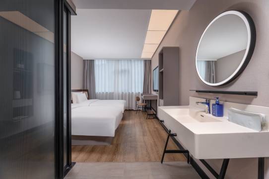 房间很干净,配套设施也很新!智能马桶加智能电视投屏很方便,床品也很舒服,体验很超预期!前台小姐姐服务特别热情周到,下次来扬州还会选择这家汉庭!