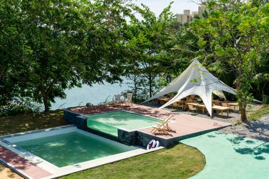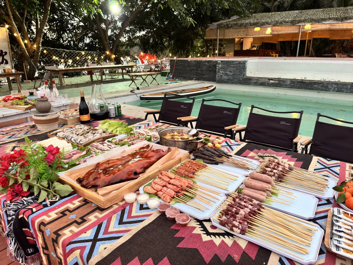 本店位于三亚海棠湾藤桥河谷,这里依山傍水。我们尽可能打造”露营+“的新理念。为大家提供新鲜有趣户外生活方式,我们有下午茶,星空烧烤盛宴,夜下露天电影KTV,篝火晚会,桌游棋牌,钓鱼,飞盘,观湖游泳池,游艇码头,水上浆板等社外活动。
