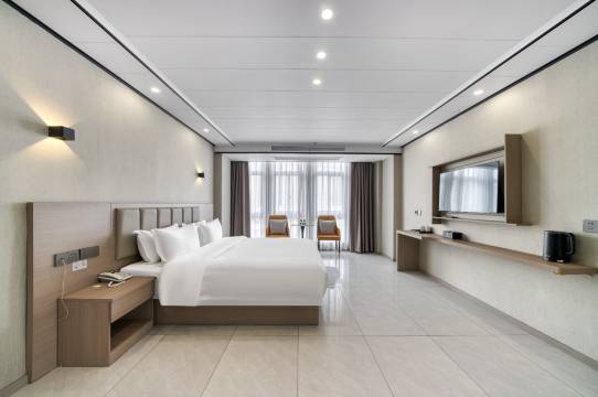 酒店整体环境优雅,房间宽敞明亮。床品很舒服。住的安心又舒心,房间干净,设施设备很好,空调效果好。卫生间热水出水很快。强烈推荐给大家。