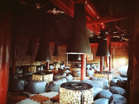 最后,如果有些寒冷,你还可以坐在客栈的餐厅感受到篝火的温暖与热情,老板还会无偿提供核桃、土豆、饵块等等,大家围坐在一起笑谈人生,旅行的意义不就在此吗。